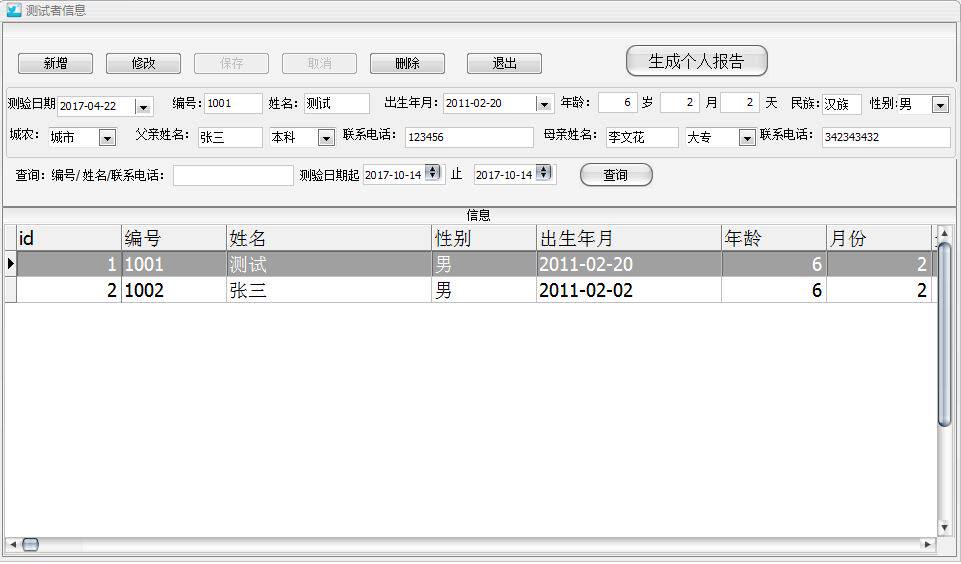 1、进入测试者信息管理,输入相关信息,并要选择城市或农村,这个对应不同常模表。
