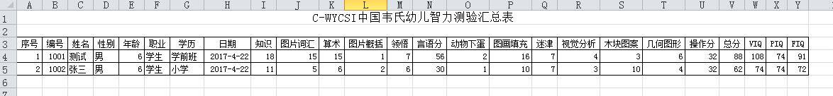 3、自动生成言语智商、操作智商和总智商。(VIQ、PIQ、FIQ)