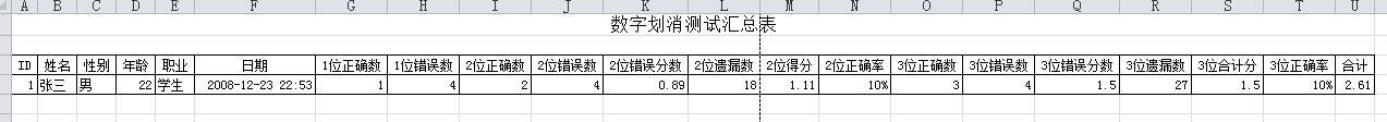 数字划消测试系统是以DCT的原始版本(Spinnler&Tognoni,1987)设计的新版本(NDCT),在数字划消测试中,与其他数字划消测试一样,数字必须在时间限制内被划掉,三个不同的矩阵由13X10个数字的字符串组成,该测试中使用的数字为从0到9的随机数字。每个矩阵的第一行用作示例,第二行用作预试验(run-in行)。其他11行数字组成了真正要测试的区域。任务是检测并找出主体可以识别的每个目标数字。目标是第一个矩阵的一个数字,第二个矩阵的两个数字,第三个矩阵的三个数字。