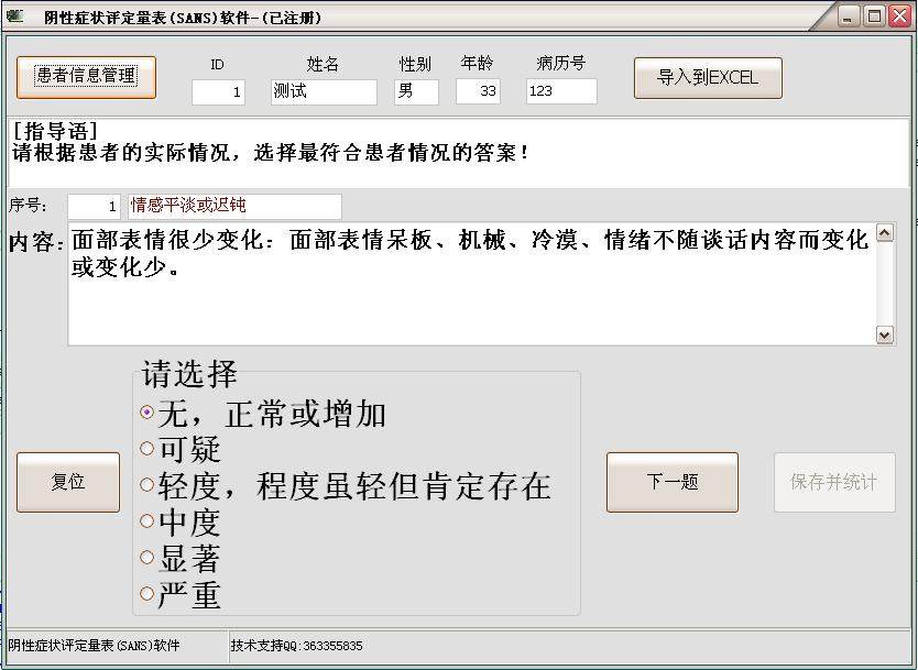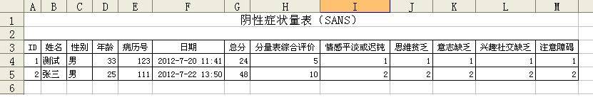 SANS24条项目被分为5个分量表:一、情感平淡或迟钝;二、思维贫乏;三、意志缺乏;四、兴趣社交缺乏;五、注意障碍。